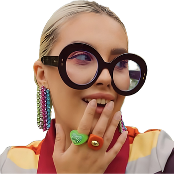 Moderno Rodada Tide Personalidade Large Frame Óculos Sólidos Padrão PC Material Anti-Blue Light Elegante Arroz Design das unhas